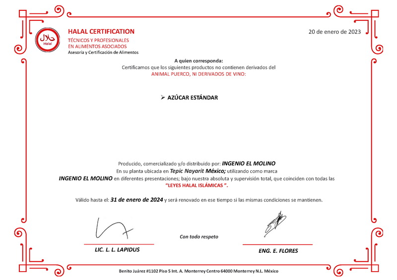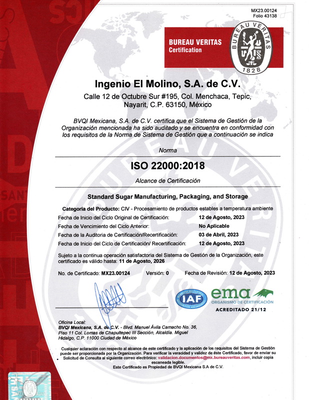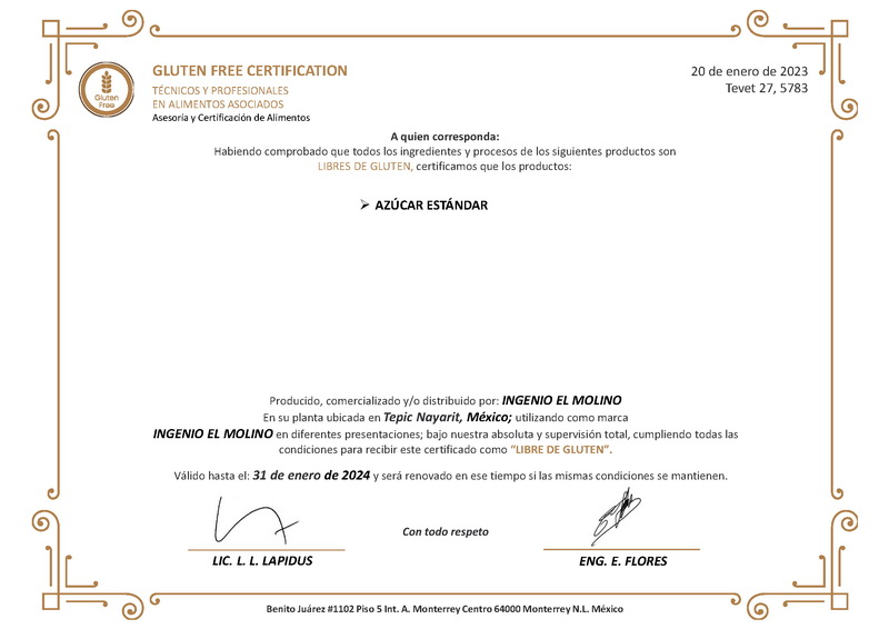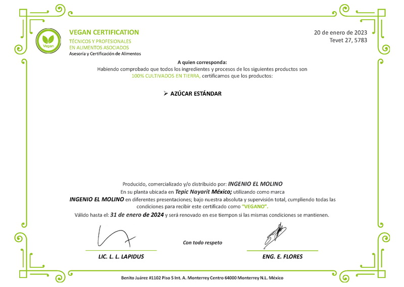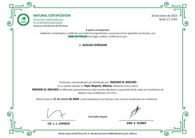 Ingenio El Molino S.A. de C.V. informa a clientes, proveedores y público en general que este es nuestro único sitio web oficial, en imolino.com.mx, y el único teléfono autorizado es el 311 211 9571. Cualquier otro medio de contacto, sitio web o canal que utilice nuestra razón social, domicilio o marcas carece de autorización o relación alguna con esta empresa.