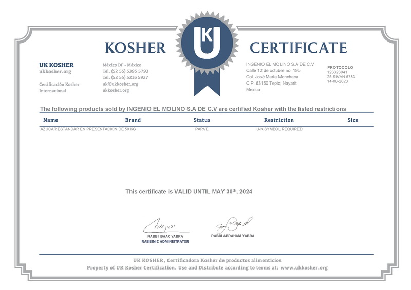 Certificación de productos Kosher para el año de 2024.